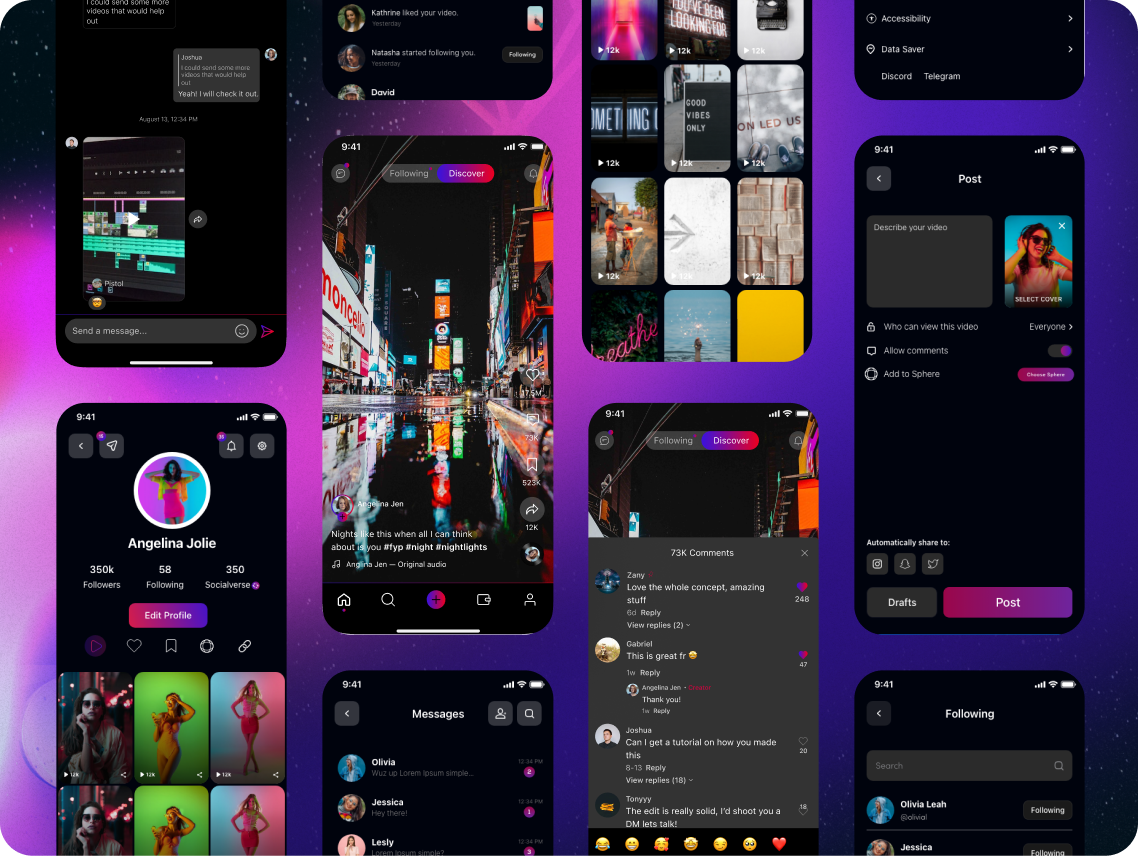 The visual design was centered around creating a delightful experience for Socialverse users. The High-fidelity screens also established a realistic experience to encourage useful stakeholder feedback and interactive usability tests.